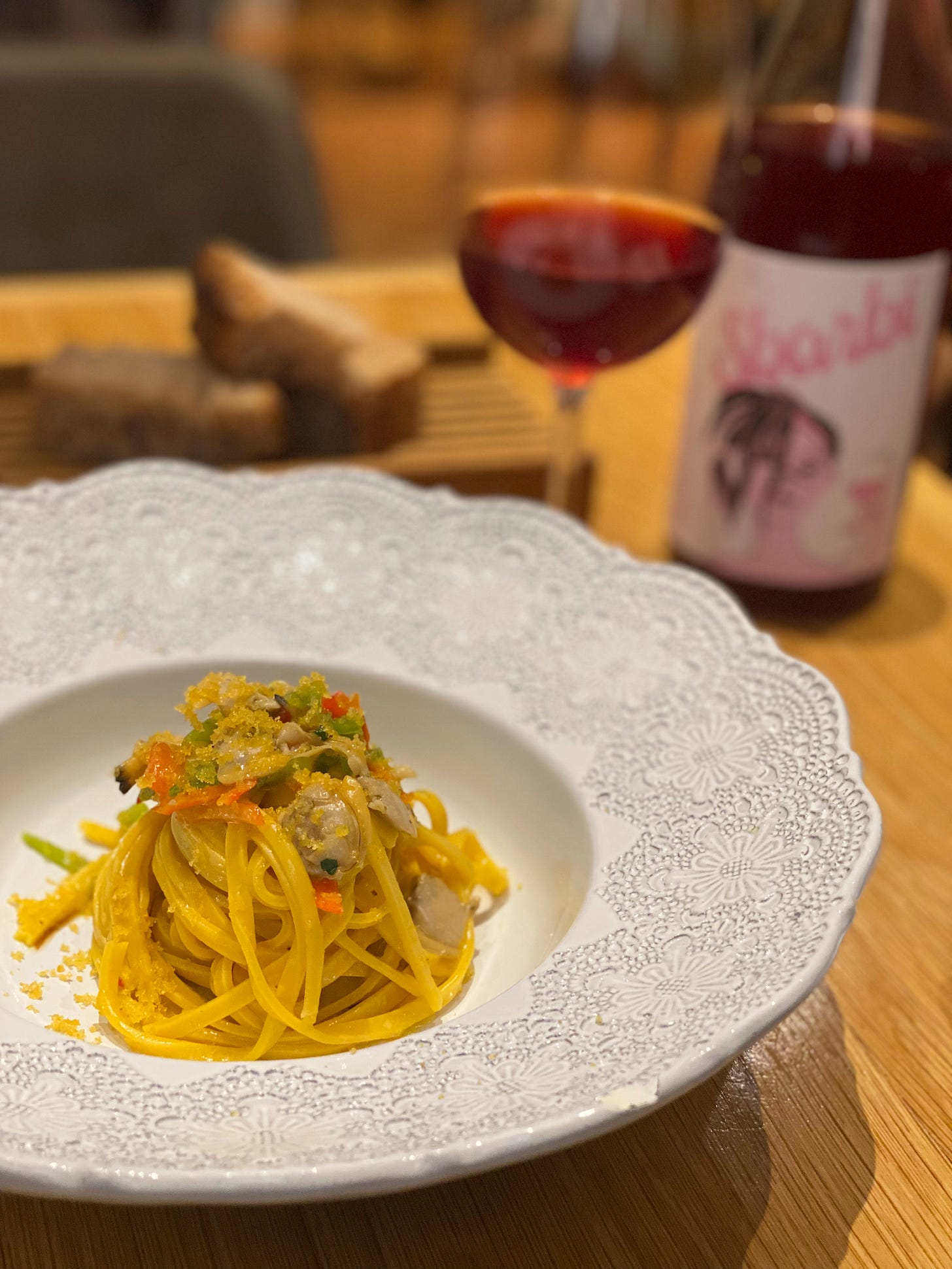Alongside, a glass of Sbarbi Barbera rosé by Lèloups - a super fresh and crisp wine. While enjoyable, I’m not convinced that this is a wine that should be paired with shellfish. The red peppers in the pasta, however, contributed greatly to bring about a decent accord between the flavours. I’m mainly at fault here for the less than perfect pairing - as I insisted on a rosé.